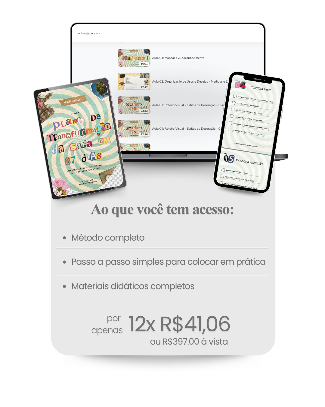 Decorar vira tentativa e erro. Você segue vídeos aleatórios, testa mil ideias e mesmo assim a sala nunca parece certa. O resultado é frustração, tempo perdido e dinheiro gasto em escolhas que não funcionam no seu espaço nem na sua vida.